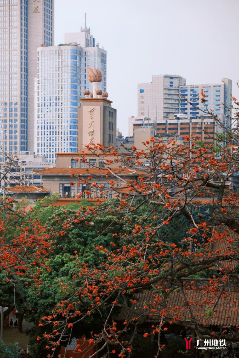 搭乘地铁,穿行于红墙黄瓦与古城墙之间,在每一站遇见木棉与历史同框的画面。乘花而行,花开地铁“美一站”。