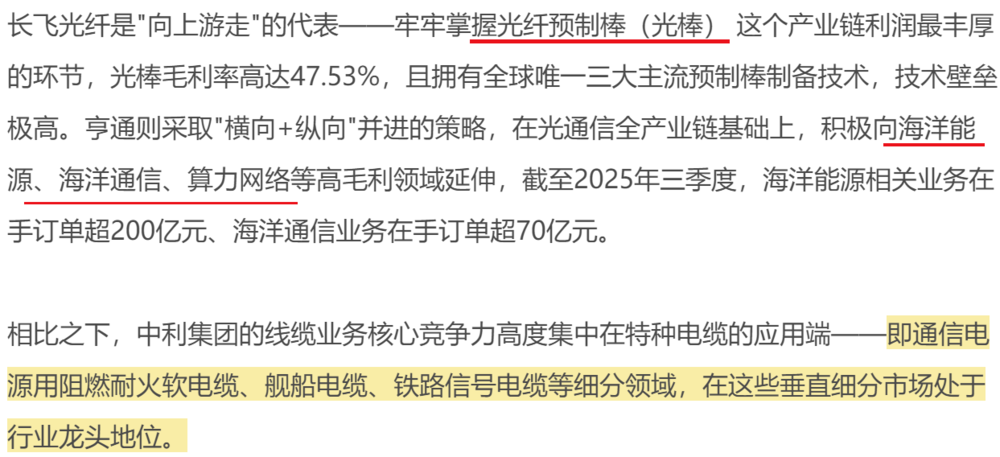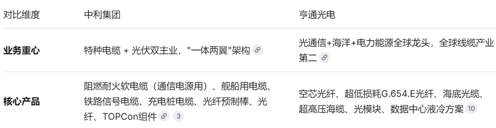 中利集团与亨通光电、长飞光纤虽然都涉足"线缆"领域,但业务重心、技术路径和竞争逻辑截然不同,可比性有限。中利的核心战场在特种电缆和光伏,而亨通、长飞则是光通信全产业链的全球巨头。