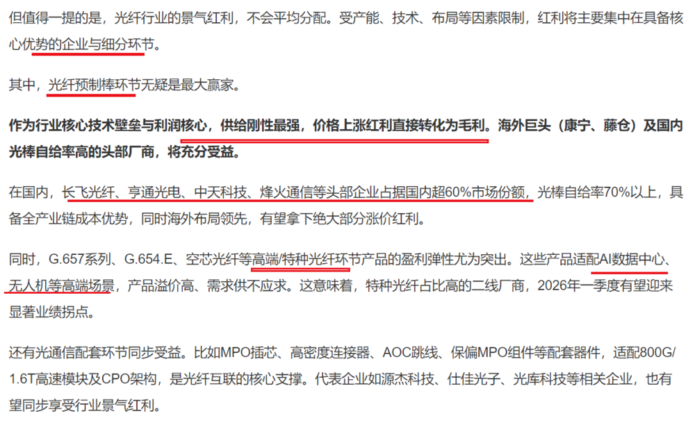 过去,行业主要靠运营商需求撑着;现在,变成了AI数据中心、海外市场、特种场景、国内新基建共同驱动,需求增速远超预期。尤其是生成式AI的爆发,把光纤从传统通信耗材,变成了AI算力网络的核心“血管”: