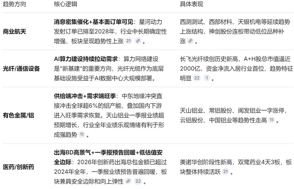趋势股集中在业绩确定性较强且具备中长期产业逻辑支撑的板块。相较于连板股短期博弈,趋势股更注重基本面验证,符合机构资金"静待4月财报密集披露期"的布局思路。