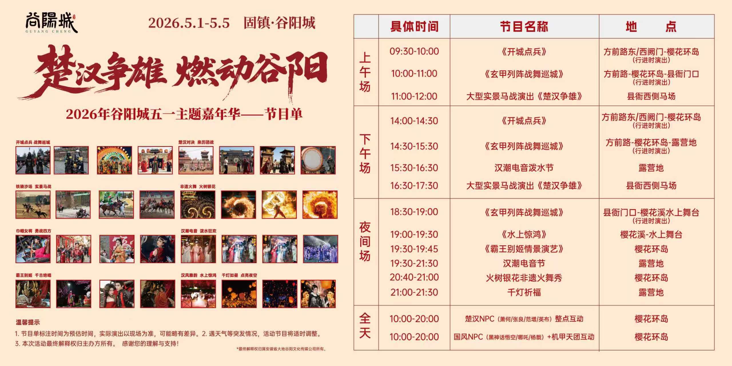 谷阳城景区节目单。固镇县委宣传部供图