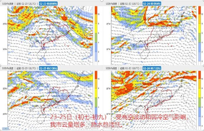 24日(初八):粤北市县阴天有小雨局部中雨,珠三角和粤东市县多云到阴天有分散小雨,其余市县多云间阴天,局部有零星小雨,大部市县早晚有(轻)雾。早晨最低气温:粤西、珠江三角洲中南部和粤东南部沿海市县17~20℃,其余大部市县13~16℃。